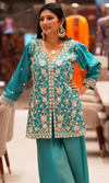 Elevate your ethnic wardrobe with this stunning blue silk embroidered palazzo set. Featuring a round neckline and full sleeves, it combines traditional charm with modern flair. The ensemble includes one kurta, one bottom, and a matching dupatta, perfect for festive occasions or casual outings. Crafted for comfort and style, this versatile piece is ideal for the contemporary woman seeking elegance and functionality. Embrace the latest trends with this chic addition to your collection.