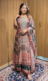 Step into elegance with this Grey Satin Floral Embroidered Palazzo Set, featuring a luxurious satin finish, intricate floral embroidery, and a classic round neckline with 3/4th sleeves. This three-piece set includes a matching dupatta, perfect for festive occasions, parties, and sophisticated ethnic looks.