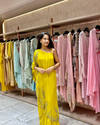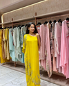 This sunshine yellow co-ord set pairs elegant one-sided embroidery with a clean, structured silhouette. The vibrant hue radiates festive charm, while the lightweight fabric ensures comfort. Sophisticated yet playful, this ensemble transitions effortlessly from day events to evening celebrations — modern style rooted in tradition.