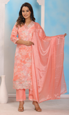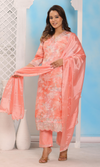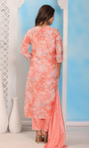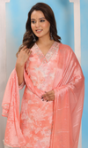 Enhance your ethnic style with this Peach Semi Cotton Floral Printed Salwar Suit, featuring a trendy V-neck, half sleeves, and a convenient pocket. Crafted from breathable semi cotton, this stylish set with matching bottom and dupatta is perfect for casual outings, festive occasions, and contemporary everyday wear.
