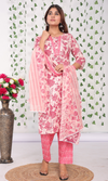 Step out in style with this Pink Semi Cotton Floral Printed Salwar Suit, featuring a round neckline, half sleeves, and a handy pocket. Made from breathable semi cotton, this trendy set with matching bottom and dupatta is ideal for everyday wear, festive occasions, and chic ethnic looks.